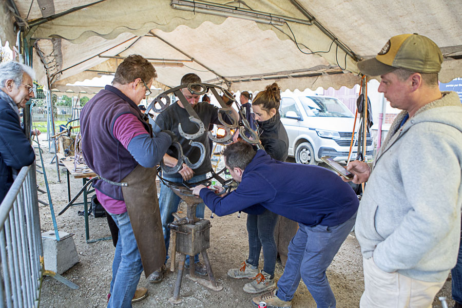 Chaque geste est précis, chaque outil chargé d’histoire. Dans un décor authentique, le feu, le métal, le bois et le sabot deviennent les instruments d’une transmission passionnée. Le public est plongé dans une ambiance sensorielle, vibrante et immersive.